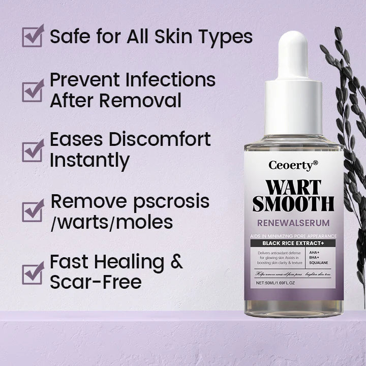 Por isso criamos o Ceoerty® WartSmooth Renewal Serum — um sérum botânico leve e de rápida absorção, desenvolvido para suavizar gradualmente as irregularidades da pele, remover o acúmulo persistente de queratina e restaurar uma superfície mais lisa e com aparência mais clara — sem ácidos, ardência, descamação ou irritação.