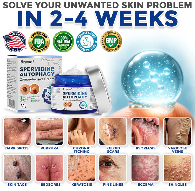 "Descobri o Creme Abrangente para Autofagia Flysmus® Spermidine online enquanto procurava soluções para a minha dolorosa acne nas costas . Para minha surpresa, a vermelhidão e o inchaço começaram a diminuir em poucos dias de uso. Agora minha pele parece significativamente mais lisa e muito mais confortável. Se você está lutando contra manchas persistentes, experimente este creme — você ficará surpreso com a rapidez com que ele renova e limpa sua pele!" - Grace Thompson, Chicago, EUA