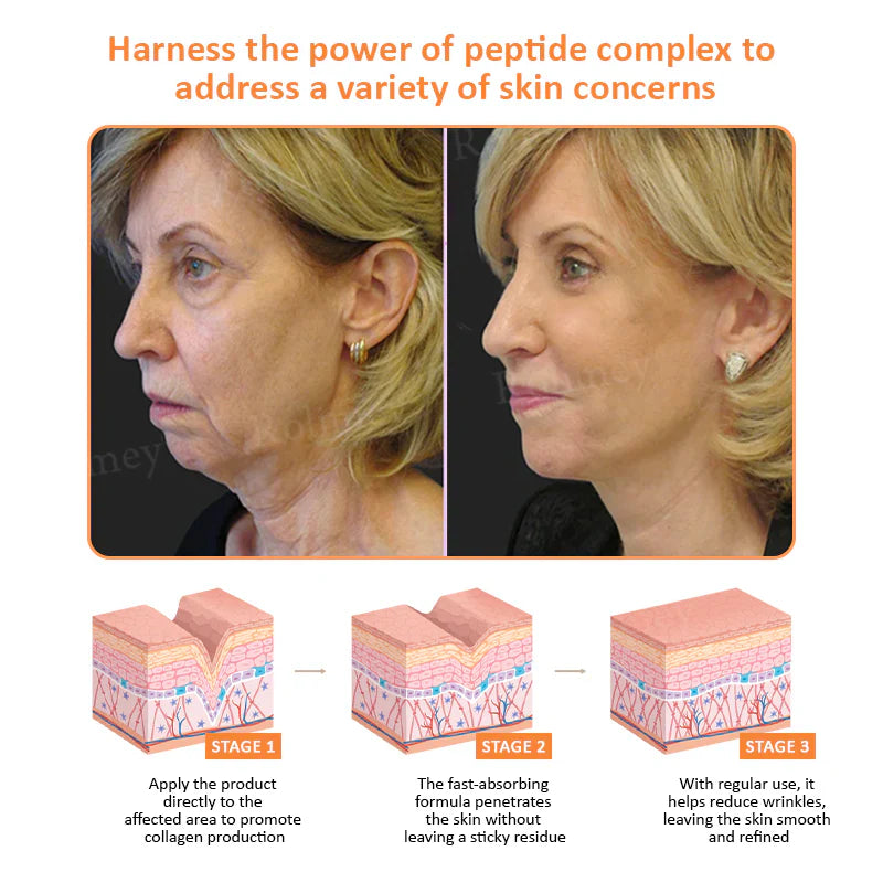Peptídeos de veneno de abelha : Os peptídeos de veneno de abelha imitam a resposta natural da pele à microestimulação, estimulando a produção de colágeno e elastina. Isso pode esticar, firmar e disfarçar instantaneamente a aparência da pele, proporcionando um efeito lifting temporário.